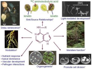 Cytokinins promote cell division, delay ageing, stimulate shoot growth, and improve crop yield.