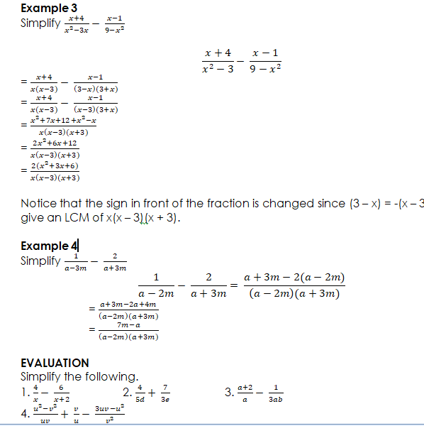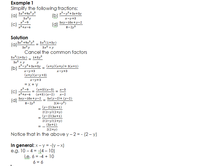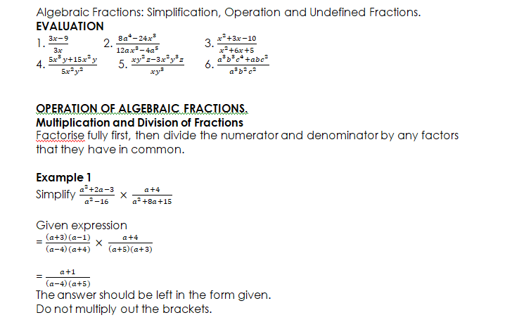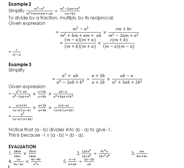 SIMPLIFICATION OF ALGEBRAIC FRACTIONS