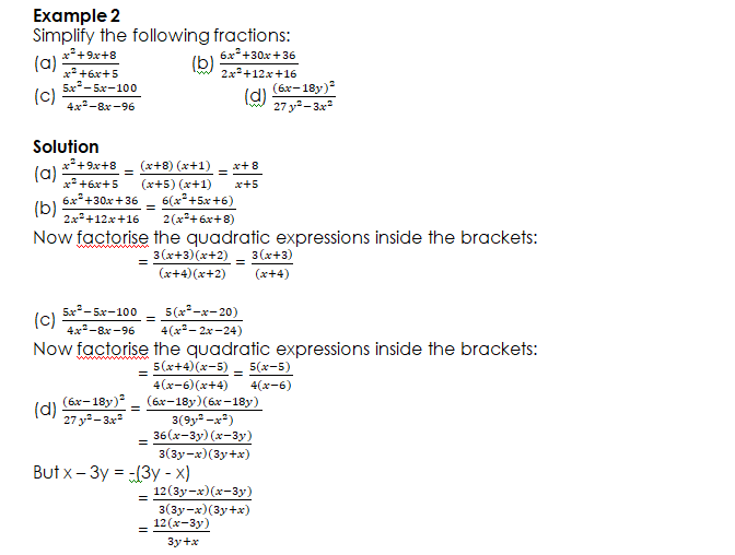 - Factorise the numerator and the denominator of the fraction, where possible.