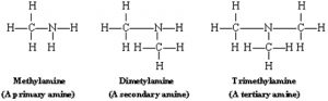 They are derivatives of ammonia where one or more hydrogen atoms have been replaced by alkyl or aryl groups e.g. RNHz, R2NH.