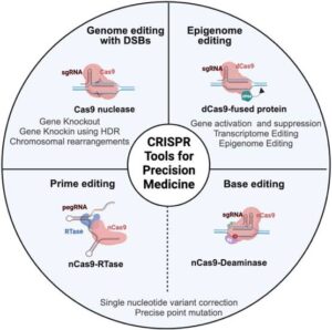 - It uses a guide RNA and Cas9 enzyme to cut DNA at specific sites.