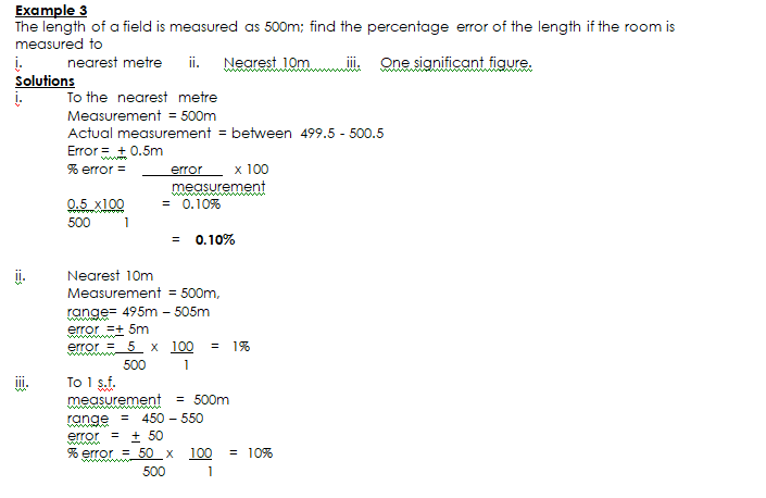 - A man is 1.5m tall to the nearest cm, calculate his percentage error. (a) 0.05cm (b) 0.33% (c) 0.033% (d) 0.05cm