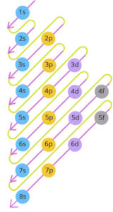 Electrons don’t just fill orbitals randomly. They follow a definite sequence that can be remembered using a diagonal rule or energy level chart. The order is: