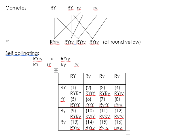 Wrinkled and yellow seeds: (6), (8), (14) : 3