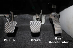 The clutch is the part of the car which connects two or more rotating shafts. In a car, the clutch controls the connection between the shaft coming from the engine and the shafts which turn the wheels. Also, the clutch allows us to smoothly engage a spinning engine to a non-spinning transmission by controlling the slippage between them. It is also located beside the brake pedal