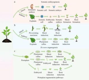 Callus induction, organogenesis, and somatic embryogenesis