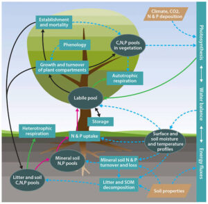 Carbon, nitrogen, and phosphorus cycles in plant ecosystems