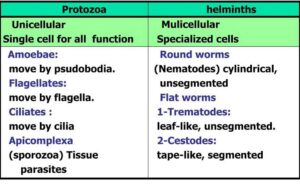 - How are protozoa different from helminths?
