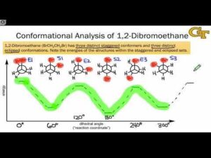 An energy diagram for conformations shows how stability changes as the molecule rotates. The most stable conformations correspond to the lowest points (energy minima), while the least stable ones are at the highest points (energy maxima). This allows chemists to predict which shapes will dominate at room temperature and which will only appear under special conditions.