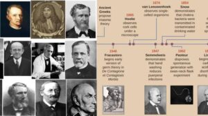 Next is Louis Pasteur, a French scientist from the 1800s who gave us the “germ theory of disease.” Before Pasteur, many people believed that diseases just “appeared.” But Pasteur showed that tiny organisms—germs—caused illness.
