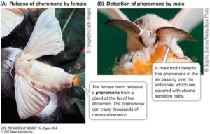 - Pheromones are chemical signals used in communication, especially for attracting mates or marking paths.