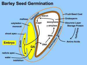 Gibberellins na the hormone wey tell the seed, “Oya, it’s time to wake up.” When water enter a dry seed, gibberellins go activate enzymes wey break down the food stored inside the seed. This food na wetin the embryo go use get energy to break through the seed coat.