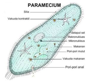 - Paramecium uses cilia to move and feed, and has two nuclei.