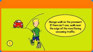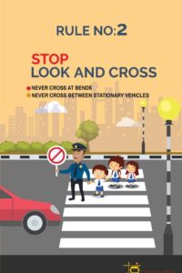 - When walking on the road, you don’t play. You should always walk on the road with caution. If you have to cross the road, look both ways first.
