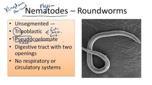 - Digestive System: Roundworms have a complete digestive system, meaning they have a mouth and an anus, which is different from some other simpler animals that only have one opening for both food and waste.