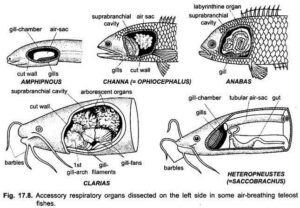 - Mention one fish adaptation for breathing in low-oxygen environments.