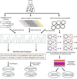 Now, metagenomics is like zooming out. Instead of studying one organism’s genes, we study all the genetic material in a whole environment—like soil, water, or even your gut!