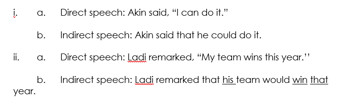 Reading Assignment: Read more on Direct and Indirect Speech from English Grammar by Olatunbosun.