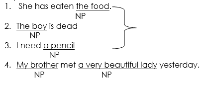 A noun phrase is a group of words which has a noun or pronoun as its headword.