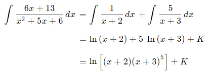 We integrate the two fractions using what we learned in Basic Logarithmic Form:
