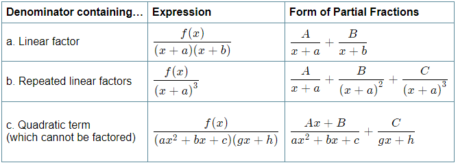 The steps needed to decompose an algebraic fraction into its partial fractions results from a consideration of the reverse process − addition (or subtraction).