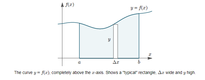 We divide the area into n equal segments of width Δx. The approximate area is given by the following: