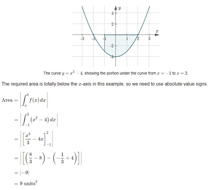 Find the area bounded by y = x2 − 4, the x-axis and the lines x = −1 and x = 2.