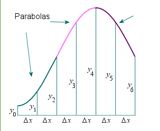In Simpson’s Rule, we will use parabolas to approximate each part of the curve. This proves to be very efficient since it’s generally more accurate than the other numerical methods we’ve seen.