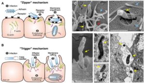 Some bacteria, like Listeria monocytogenes, even use the host’s own cell machinery to pull themselves inside.