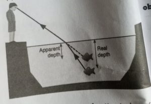 Real depth, apparent depth, refractive index and wavelength of light.