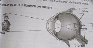 It is common knowledge that we see things with our eyes. Many parts of the eyes contribute to the vision. The light from the sun or artificial light travels in a straight line and bounces off the object and into our eyes through the pupil. The Iris changes the size of the pupil, depending on the amount/intensity of the light, to let more or less light into the eye. The light then passes through the lens and focused onto the back of the retina.