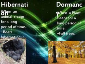 - Hibernation is when animals enter a deep sleep during cold months to conserve energy.