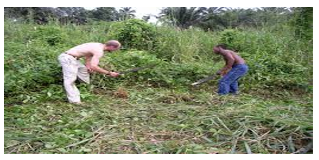 - Land clearing: Clear a suitable piece of land or spot for planting the shrub. Cutlasses and hoes are mostly used to do this.