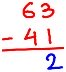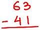 1. Subtract 41 from 63.