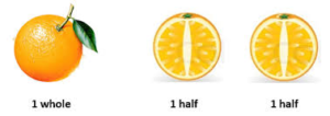 In this other diagram we have 2 whole oranges and a half which is written as 2