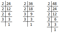Let us consider an example. Find the H.C.F. of 24, 36 and 48.