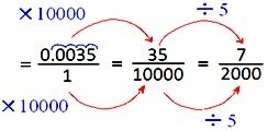 Now we will reduce the fraction 35/10000 and obtained to its lowest term or the simplest form.