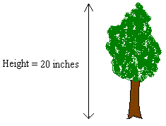 If the height of the tree on paper is 20 inches, what is the height of the tree in real life?