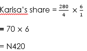 - Karisa and Hope saved some money in the ratio 6:4. If Hope saved N280, how much did Karisa save?
