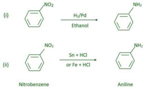 Reduction – Nitro compounds can be reduced to amines using Sn/HCl, Fe/HCl, or catalytic hydrogenation.
