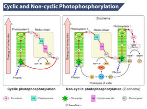 - What is the main difference between cyclic and non-cyclic electron transport?