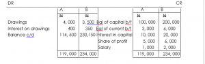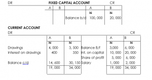 As illustrated above where the capital account will remain fixed according to the agreement, the current account must be opened for each partner. It is debited with drawings, interest on drawings and credited with interest on capital, the share of profit and partner’s salary.