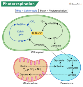 Oxygen Build-up – When stomata close to prevent water loss, less CO₂ enters, but O₂ (produced during photosynthesis) accumulates, forcing RuBisCO to react with O₂ instead of CO₂.