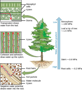 Now, why does water keep moving from the roots to the stem and then to the leaves? This happens because of water potential—a fancy way of saying that water moves from areas where there is more of it to areas where there is less.