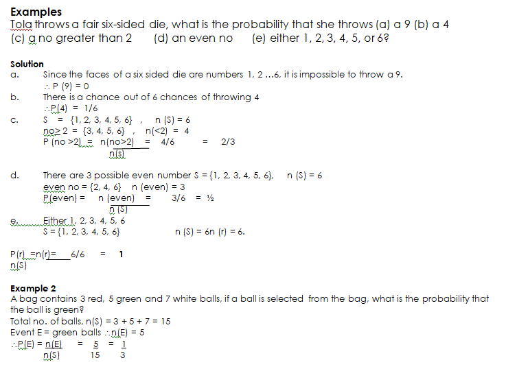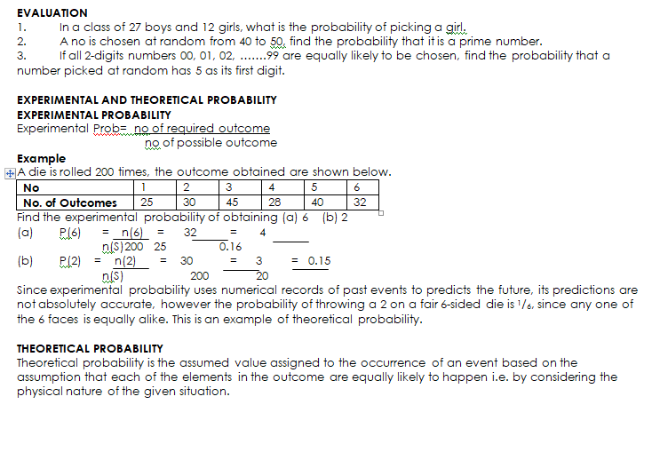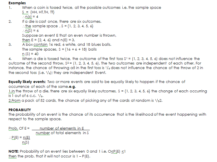 (i)Event: When an experiment is performed two or more results or outcomes will be expected to happen. Each attempt is called a trial and the outcome of a trial and the outcome of a trial is called an event, usually denoted by E.