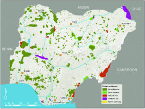 - Nigeria’s protected areas include national parks, game reserves, forest reserves, and community areas.