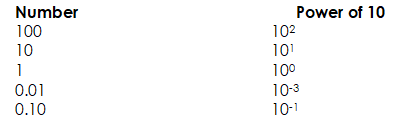 Note: One-tenth; one hundredth, etc. are expressed as negative powers of 10 because the decimal point is shifted to the right while that of whole numbers are shifted to the left to be after the first significant figure.