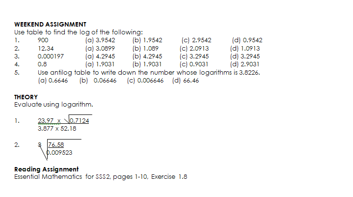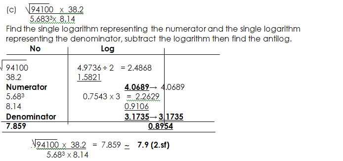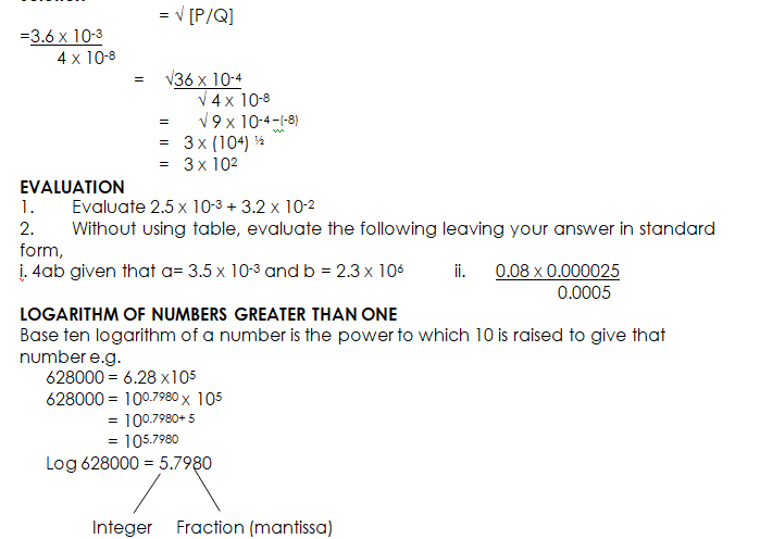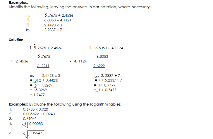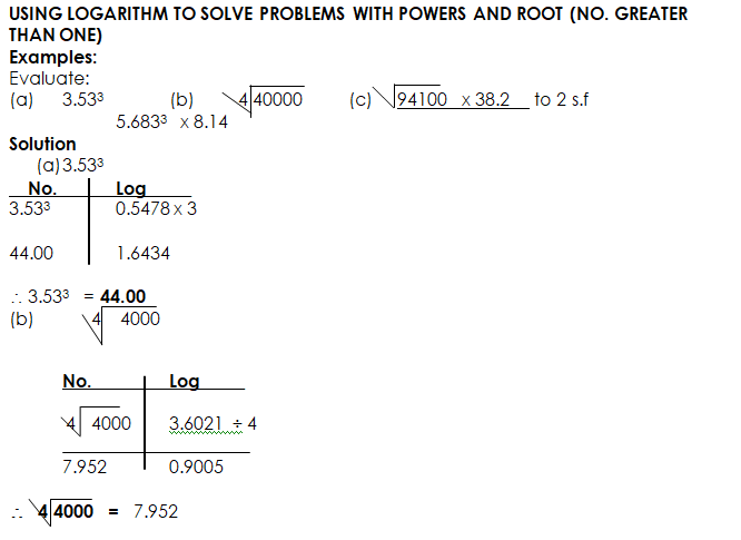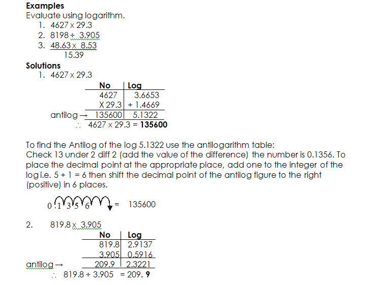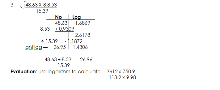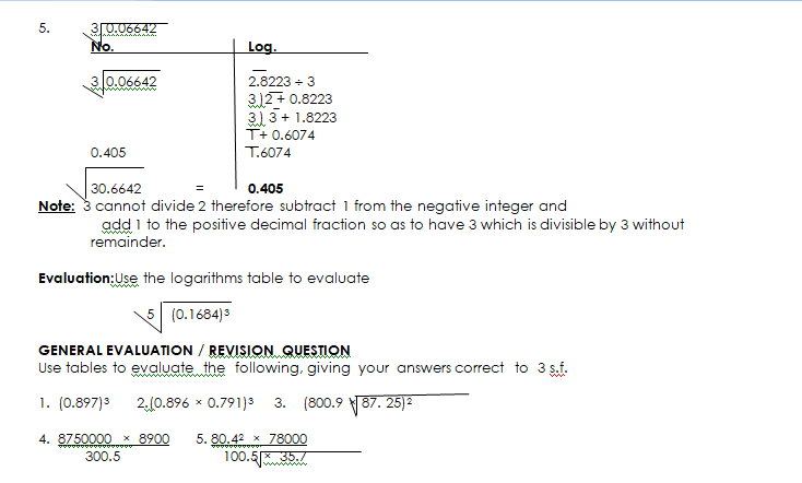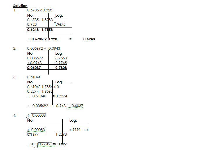 USING LOGARITHM TO EVALUATE PROBLEMS OF MULTIPLICATION, DIVISION, POWERS AND ROOTS WITH NUMBERS LESS THAN ONE
