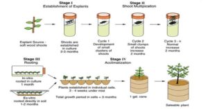 - The stages include: Initiation, Multiplication, Rooting, Acclimatisation, and Transfer to Soil.