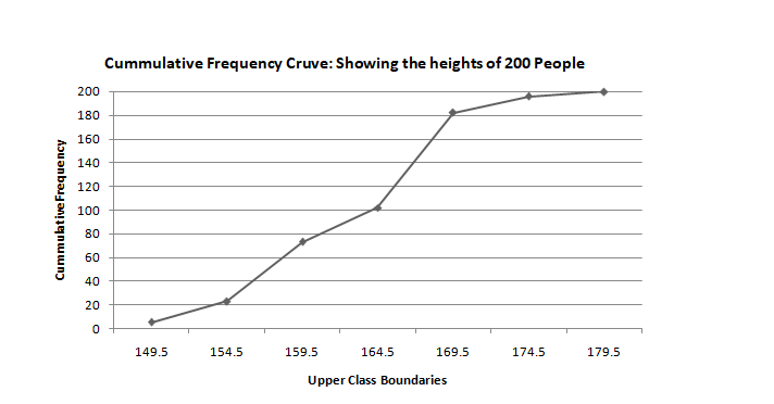 The cumulative frequency curve is also called the OGIVE. It is the graph of the cumulative frequency against the upper class boundary.